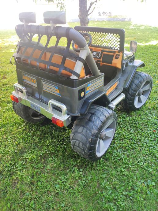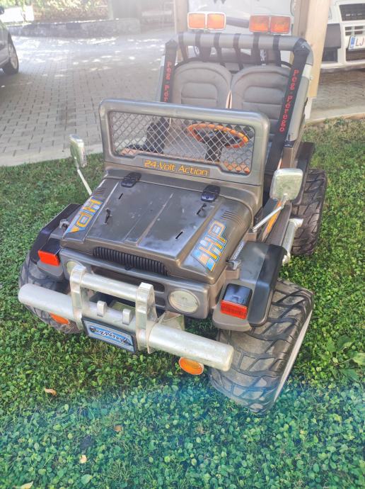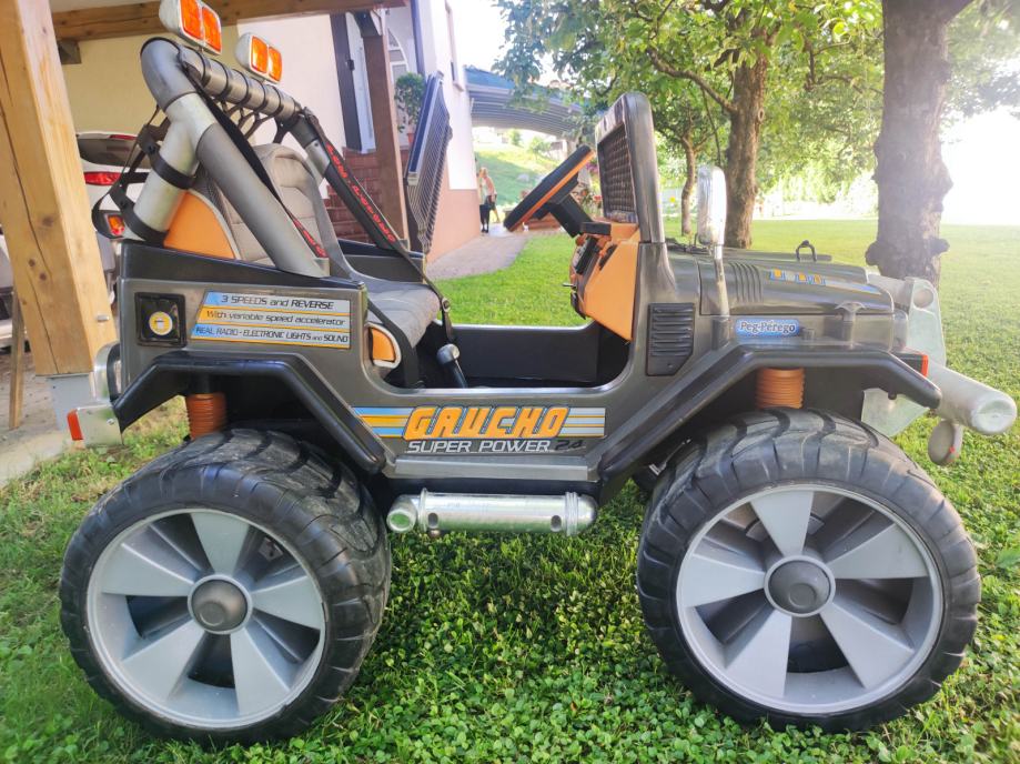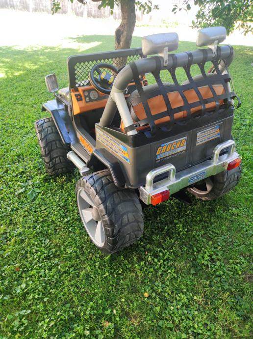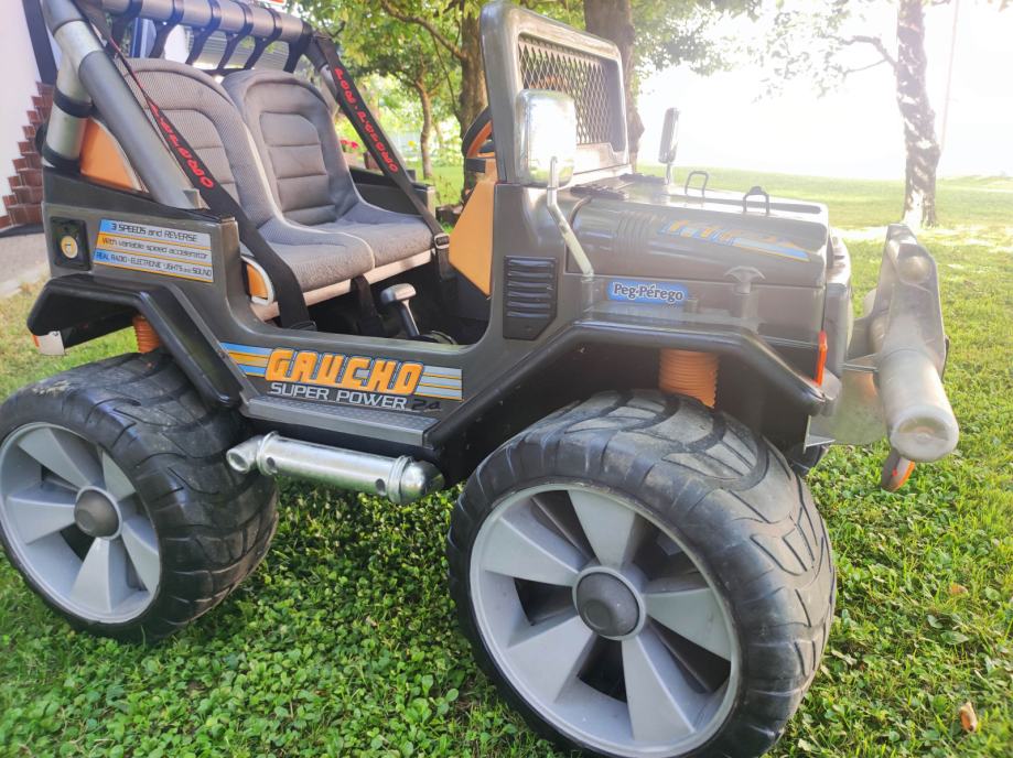 Prodam otroški jeep GAUCHO 24V v voznem in ispravnem stanju, z novimi akumulatorji, polnilcem akumulatorjev, ordjem, avtomatsko nožno zavoro, dobro ohranjen, malo rabljen. Ima tudi dve hitrostni prestavi.
