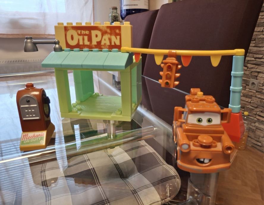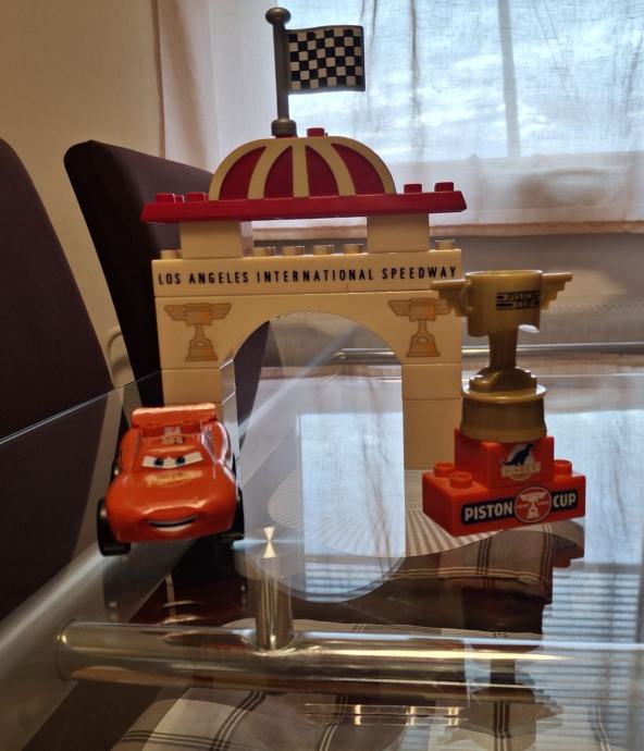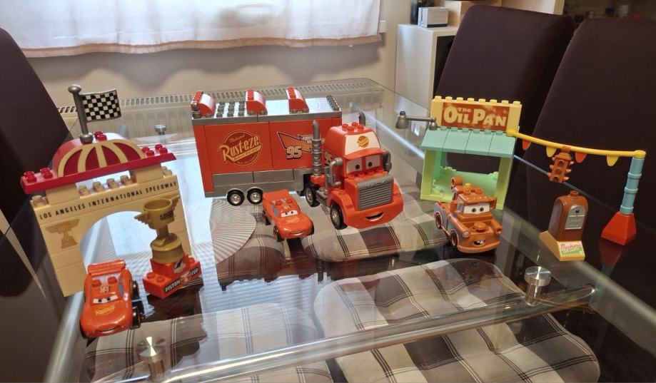 Prodam 3 komplete - Max tovornjak+ avto strela Mcqeen, Dajs in postaja ter avtostrela Mcqeen in podest za zmago s pokalom.