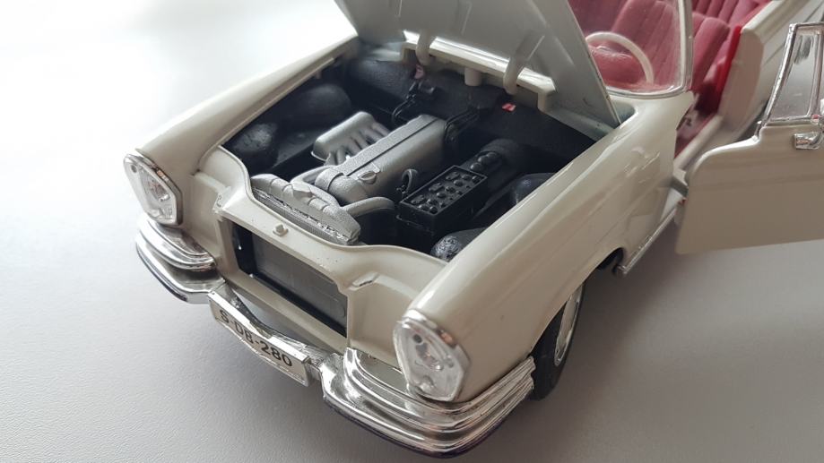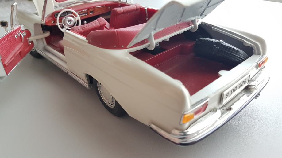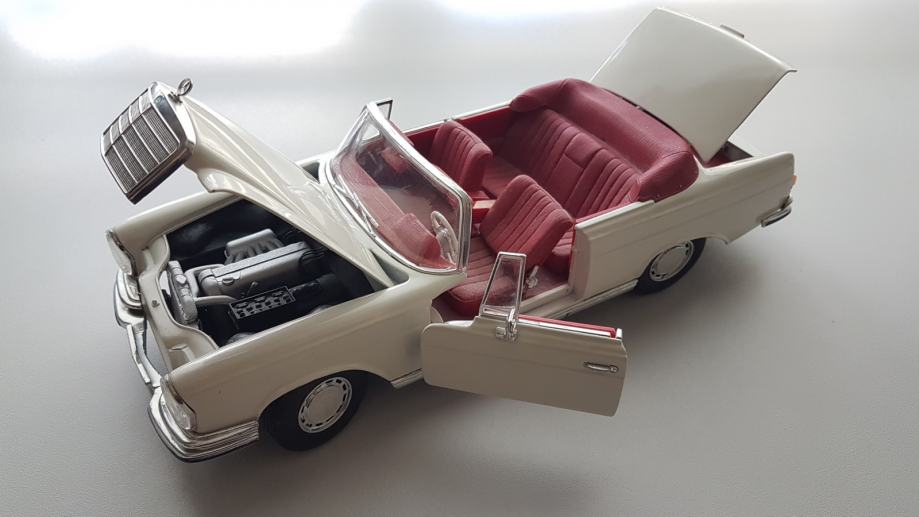 Velik model, dobra izdelava, letnik 1967, 280 SE Cabrio Mercedes, v 1:1 vreden pravo premoženje, v 1:18 pa precej bolj dostopen :)