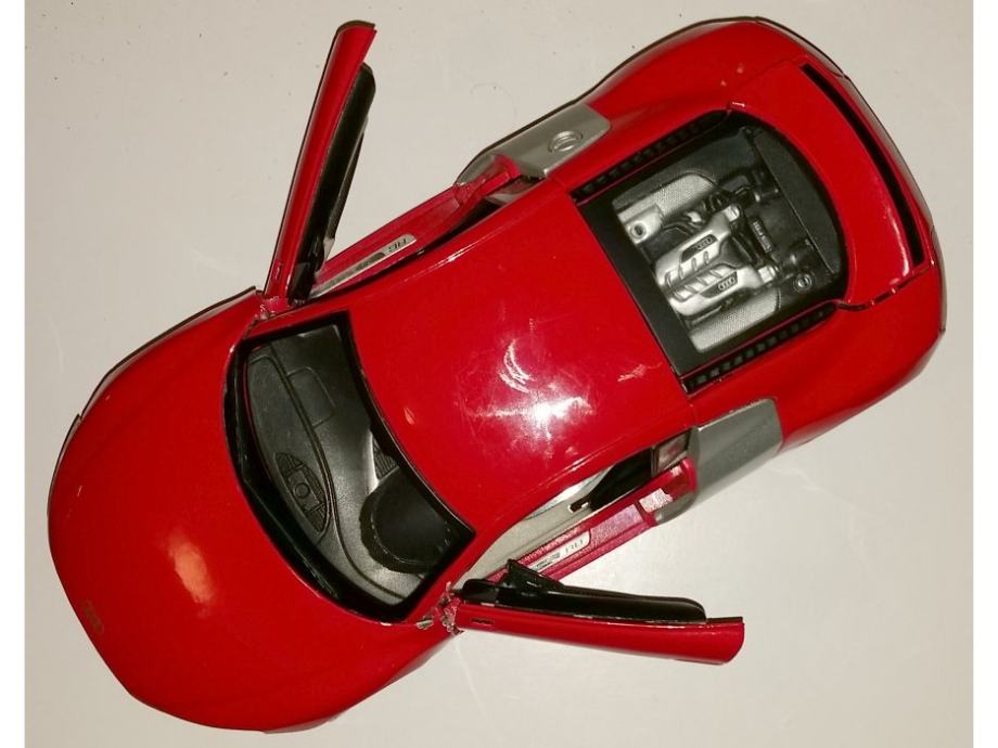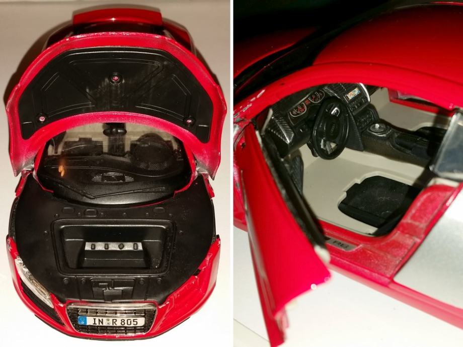Karoserija je iz kovine, motor, notranjost in kolesa pa so iz plastike.