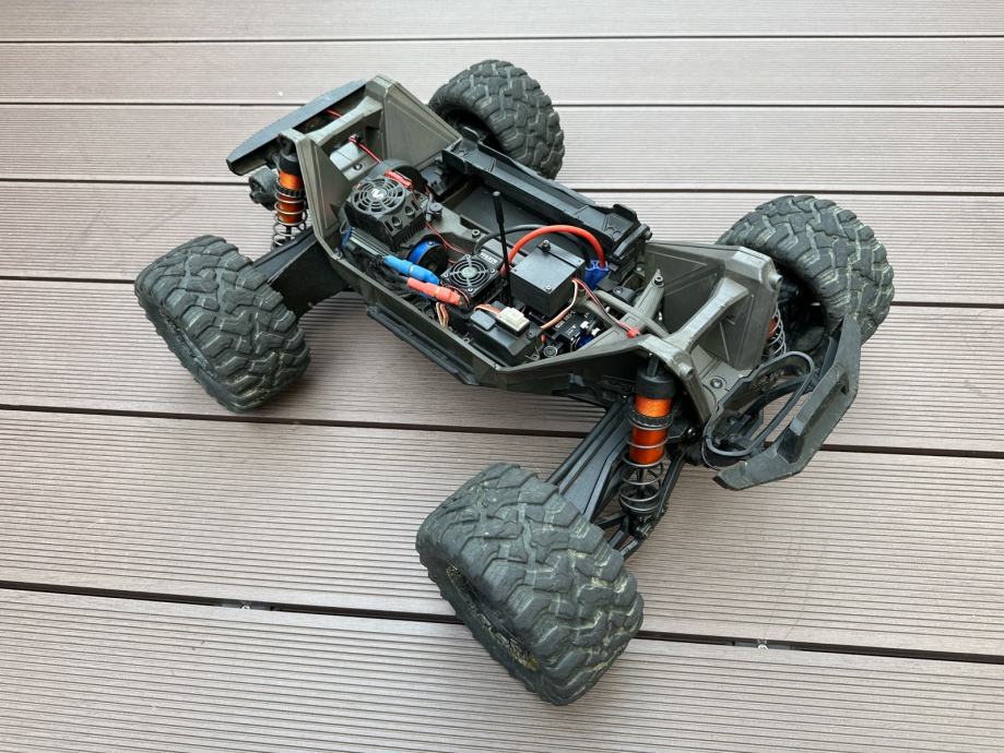 Maxx je z novim hobbywing ESCjem dobesedno zaživel in je izredno poskočen. Top hitrost je okoli 80kmh.