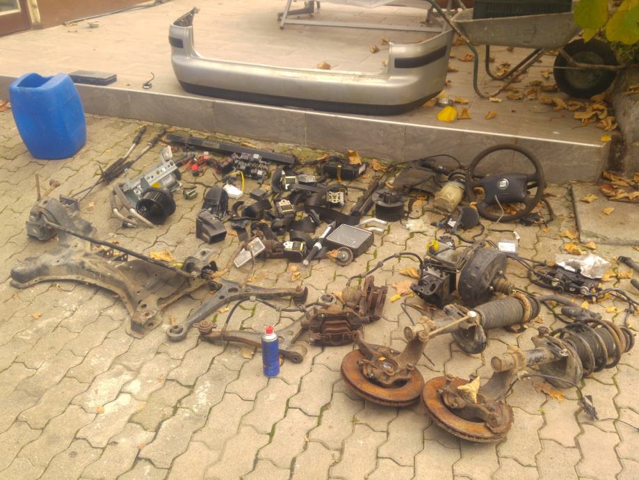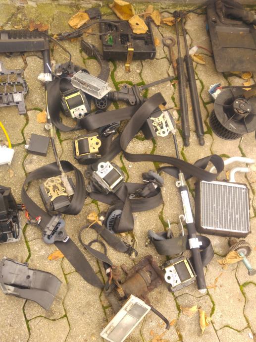 Ventilator kabine, upor ventilatorja kabine, sprednji amortizerji, sprednje zavorne čeljusti, sprednja vzmet, glavni zavorni cilinder, abs enota, varnostni pasovi, ročice ob volanu, alternator, štarter, sprednji most ,airbag , volan, razne plastike, več na sliki.