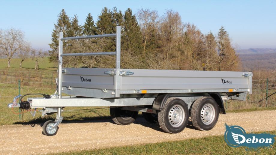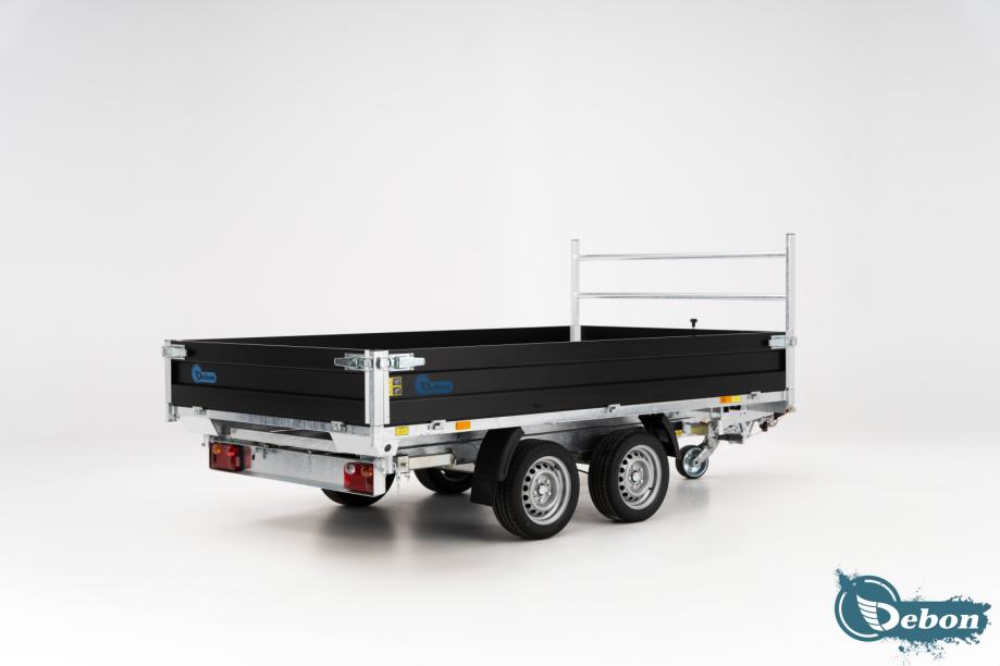 Ponujamo širok izbor novih kiper prikolic priznanega proizvajalca DEBON, znanega po kakovostnih in vsestranskih rešitvah za prevoz tovora. Prikolice DEBON so zasnovane za visoko produktivnost in vzdržljivost, z odstranljivimi stranicami za enostavno nalaganje in razkladanje.