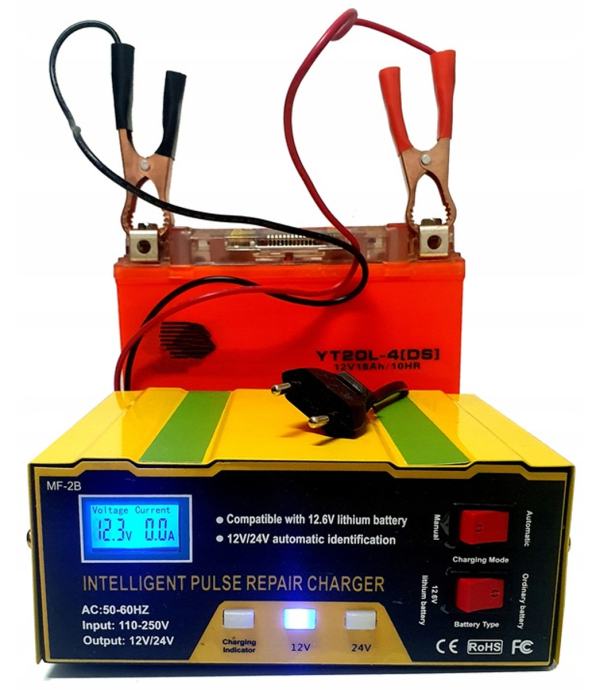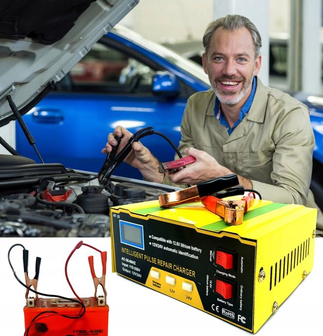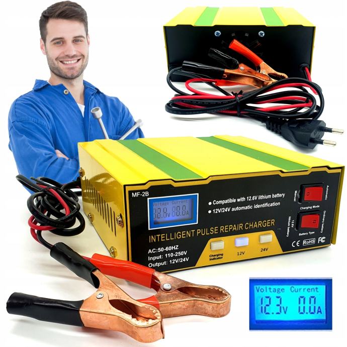 Profesionalna naprava za polnjenje akumulatorjev v avtomobilih, motorjih, kosilnicah in motornih čolnih. Je univerzalen, sodoben polnilnik 12/24V , ki omogoča polnjenje različnih vrst baterij: tradicionalnih, litijevih, kalcijevih, samopostrežnih in brez vzdrževanja. Je izredno enostaven za uporabo, tako da lahko vsak sam enostavno napolni napravo za napajanje vozila. Ima nadzorno ploščo in L E D zaslon, ki jasno prikazuje parametre.