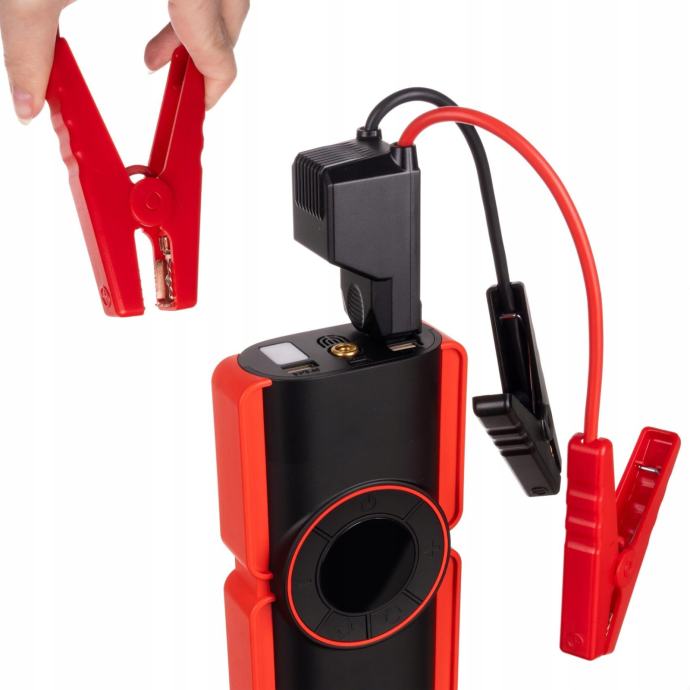 Ne ostanite nikoli več brez energije! 6v1 multifunkcijski zaganjalec (Jump Starter) je prenosna in zmogljiva naprava, ki vam omogoča zagon avtomobila, motorja, čolna ali drugih 12V vozil kjerkoli in kadarkoli. Z močnim 800A zagonskim tokom lahko oživite prazno baterijo v trenutku, obenem pa vam služi kot powerbank (10.000 mAh) za polnjenje telefonov, tablic in drugih USB naprav.