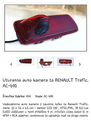 Avtokamera original za Renault Trafic,Opel Vivaro,kamera se nahaja v sklopu stop luči katera se zamenja z originalno lučjo