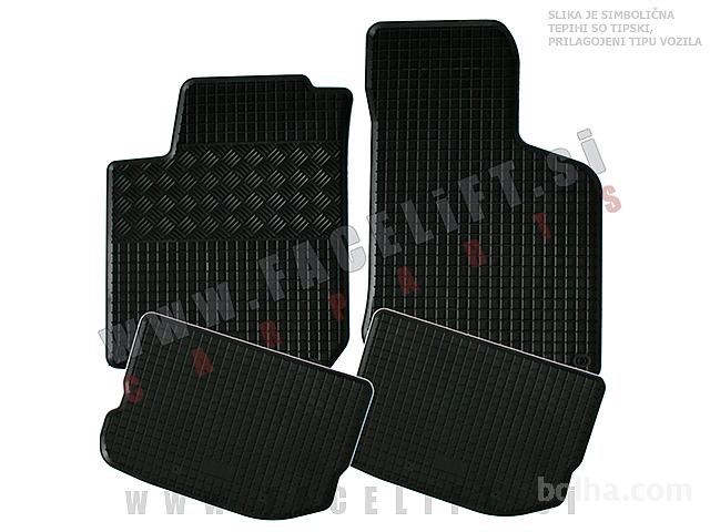 Gumijasti tepihi. V kompletu prejmete štiri tepihe. Tepihi so tipski, prilagojeni tipu vozila (niso univerzalni).