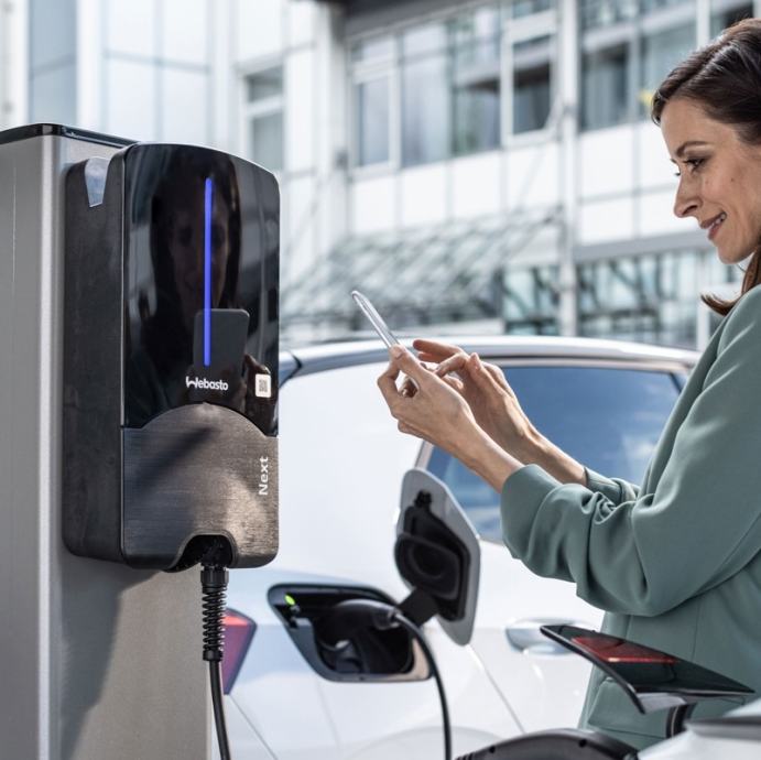 E-polnilna postaja Webasto Next s svojo močjo do 11 kW vam omogoča hitro polnjenje električnega vozila.