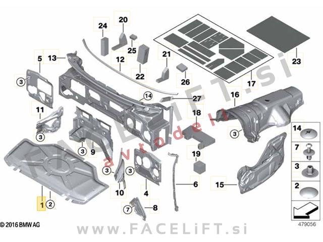 Zvočna izolacija pokrova motorja. Izolacija je nova.