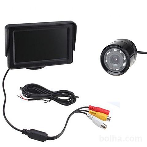 Kvaliteten komplet za vzvratno vožnjo, z monitorjem 4,3 "TFT-LCD in kamero z infrardečimi diodami (8 IR), za odlično sliko tudi pri šibki svetlobi. Kamera je vodotesna. Paket vključuje kable za povezavo (6 m), po želji izdelamo za vaš daljše kable. Priložena navodila, garancija.