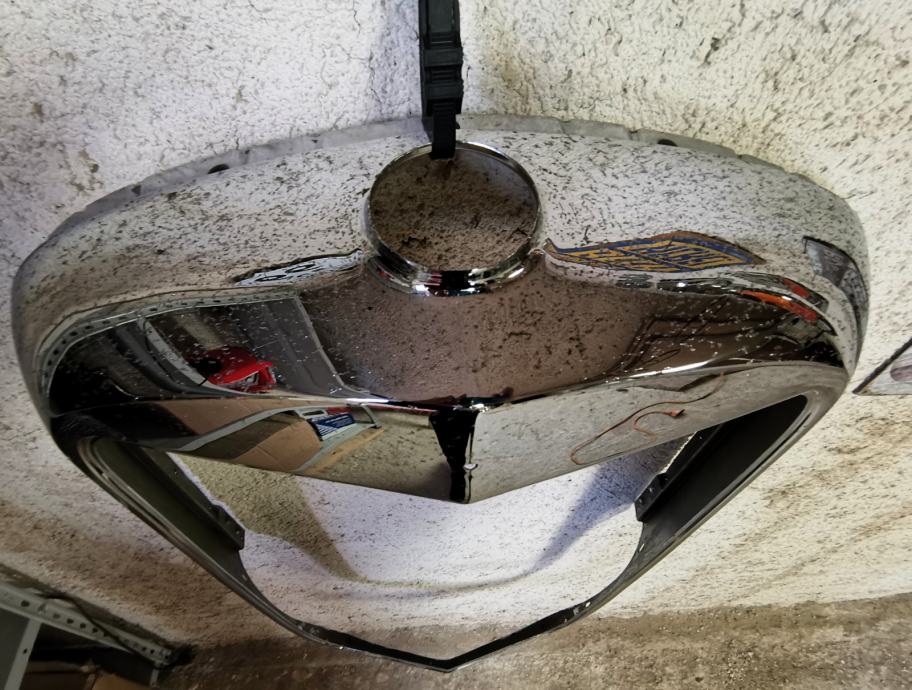 Maska je brez udrtin in rje. Nanos kroma ima pikice in manjše praske, kar je posledica starosti.