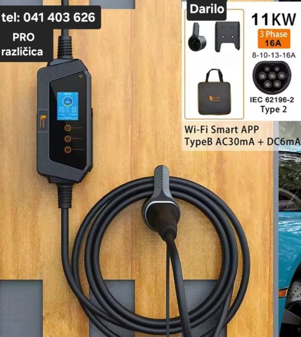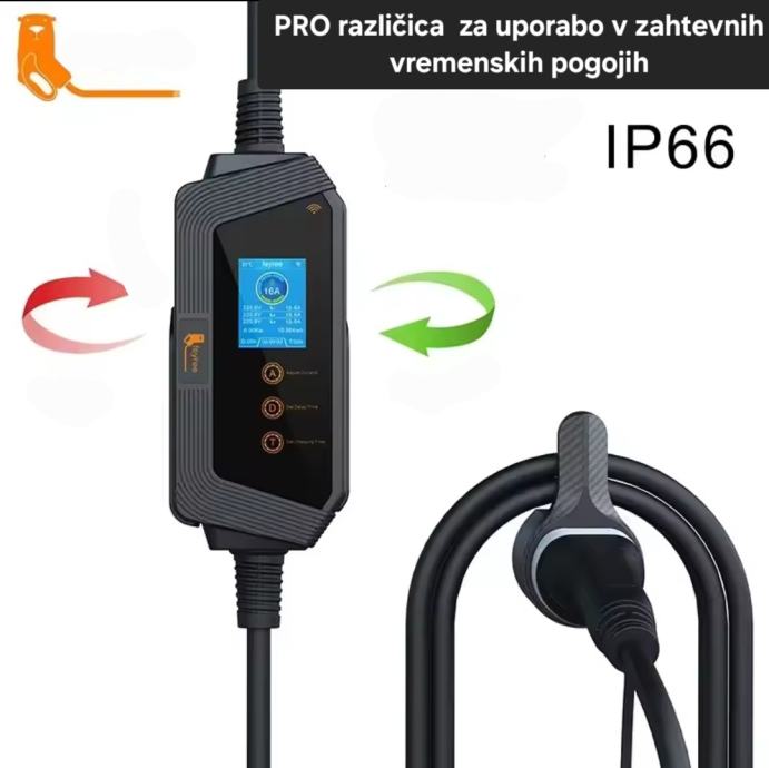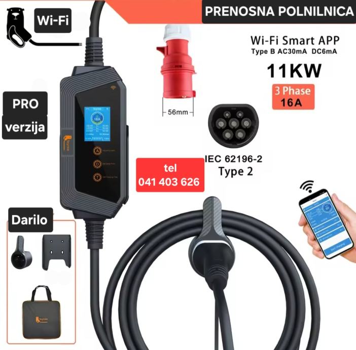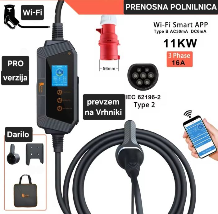 PRO verzija prenosna WiFi postaja Type2 11kw 3 fazna WiFi IP66. Priložena torba, nosilec za kabel in nosilec prenosne postaje. Primerno za uporabo v najtežjih vremenskih razmerah.