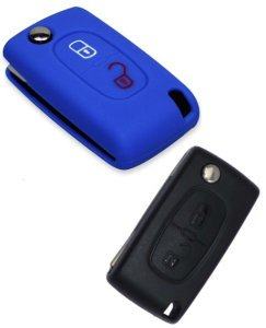 Silikonska zaščita za avto ključ Peugeot, modra. Lastnosti: Visoko kakovostna silikonska zaščita, vzdržljiva, brez vonja, prijetna na otip. Ključe ščiti pred padci, obrabo, praskami in razpokami. Poleg izdelka je prikazan ključ, za katerega ustreza zaščita. Signal, ki ga oddaja avtomobilski ključ, bo deloval normalno in običajno, saj ga silikonski ovitek ne bo oviral. Logotip vašega ključa zaščita ne prekrije.