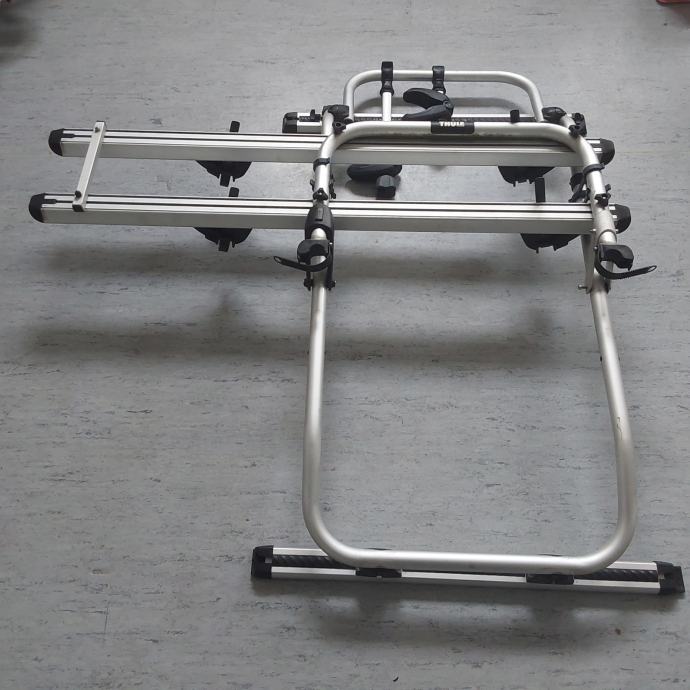 Rabljeni nosilec za kolesa Thule Elite Van XT v srebrni barvi, namenjen uporabi na prtljažnih vratih. Primeren je za CITROEN Jumper od letnika 2006 dalje, za višino strehe H2 in H3.