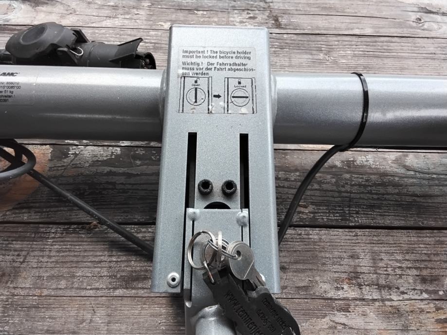 Akcija vrhunski nosilec 2 koles, 1 krat rabljen ima nagib za odpiranje prtljažnika se zaklene na kljuko in zaklene se vsako kolo posebej. podarim gurtno-pas za dodatno povezovanje koles lp.