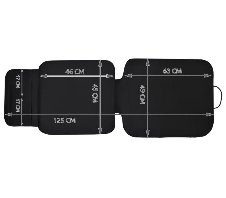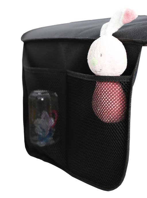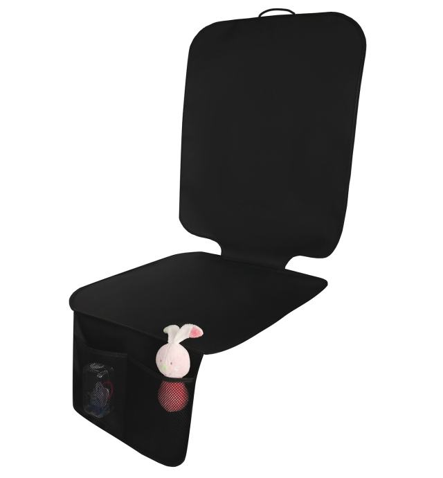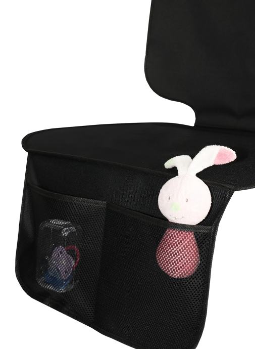 Sedež je dodatno podložen z gostim poliestrom, ki je nepremočljiva plast . Zaščitno podlogo je enostavno namestiti – le razprostrite jo po sedežu in pritrdite na vzglavnik s pomočjo elastike, ki je prišita na zgornji del naslonjala. Dva žepa na dnu podloge vam bosta omogočila shranjevanje potrebnih stvari.