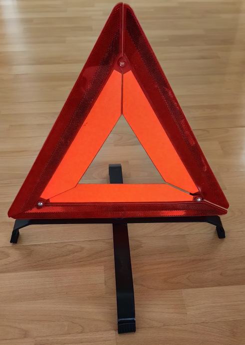 Nerabljen zložljiv varnostni trikotnik z kovinskim podnožjem.