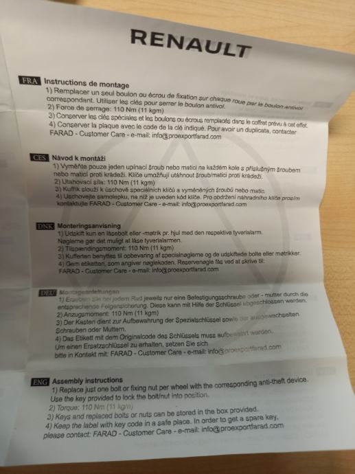 Prodam varnostne vijake / varovalne vijake za Renault in Dacia.