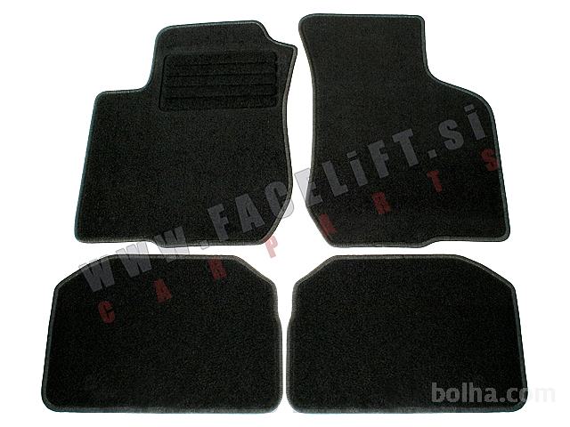 Velour tepihi. V kompletu prejmete štiri tepihe. Tepihi so tipski, prilagojeni tipu vozila (niso univerzalni).