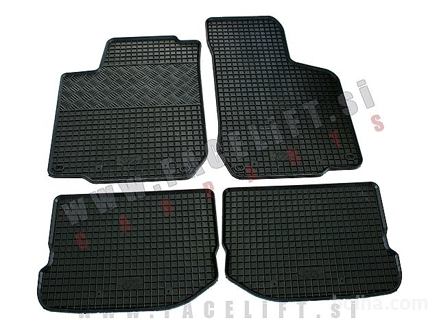 Gumijasti tepihi. Tepihi so novi. V kompletu prejmete štiri tepihe. Tepihi so tipski, prilagojeni tipu vozila (niso univerzalni).