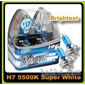 XENON IZGLED- SUPER WHITE 5500K žarnice H7/55W. Žarnice dajejo belo svetlobo in imajo veliko svetilnost. Žarnice so tipa LONG LIFE, ki pomeni, da imajo daljšo življensko dobo od normalnih žarnic. Komplet vsebuje 2 žarnici.