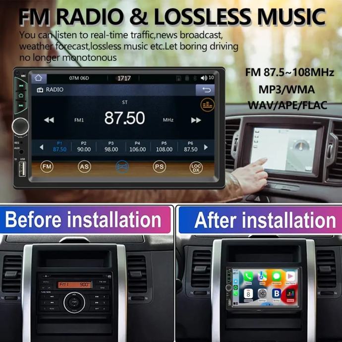 Avtoradio v kompletu s kamero za vzvratno vožnjo, daljincem... Android auto in Carplay brezžično. Gre za nizkocenovni avtoradio, vecino casa deluje v redu, občasno pa se ne poveze brezžično preko android auto (preko usb se vedno poveže). Zamenjal sem originalni mikrofon, saj je bil zelo slab. Sedaj je pogovor preko bluetooth normalen, povezava bluetooth tudi deluje brezhibno, nisem še imel težav. Nima RDS (imena radio postaj) tako kot večina "made in china".l, to me moti in je tudi glavni razlog za prodajo. Cena je zadnja, prevzem v ljubljani ali po dogovoru. Po pošti ne pošiljam. Kontakt prek bolhe ali o31-ooo-9o6 (po 15h dosegljiv)