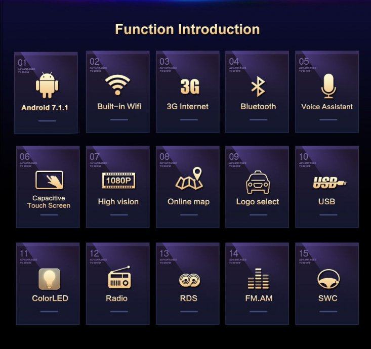 GPS + Radio+RDS + Bluetooth + A2DP + IMENIK + Polnjenje mobilnega telefona preko radia + USB & SD + WiFi + AUX + Mirror Link + MAPE