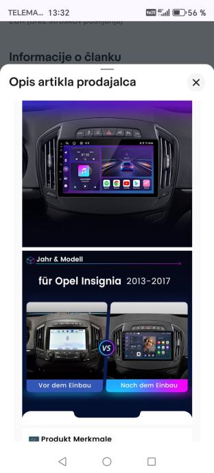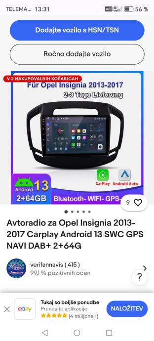 Prodam novi Avtoradijo za Opel Insignia 2013-2017 Carplay Android 13 SWC GPS NAVI DAB+ 2+64G. Prodajam ga ker mi ne ustreza v moj model avta. Napačna nabava. Zraven je še zadnja kamera. Tel. :040931451