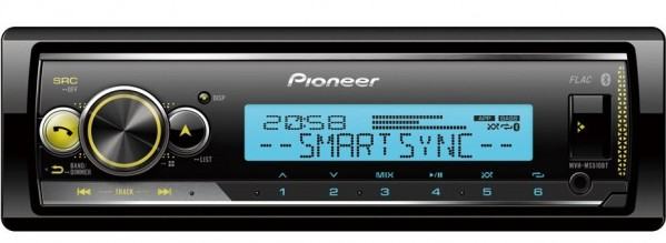 Pioneer MVH-MS510BT je radio namenjen vgradnji v plovila ali v vlažna okolja. Povezljiv je tako Apple kot Android telefoni. Močan MOSFET ojačevalnik moči 4 x 50W vam bo pričaral izjemno glasbeno predstavo, za vse tiste, ki bi želijo še več, pa je radio opremljen s 3x pre-out izhodi za priklop dodatnih ojačevalnikov. Na odstranljivi prednji plošči se nahajata tudi USB priključek in AUX-in vhod, preko katerih lahko neposredno predvajate glasbo z vašega USB ključka ali priljubljenega prenosnega MP3 predvajalnika. Osvetlitev zaslona je prilagojena tako, da je vidljivost optimalna tudi v najmočnejših sončnih dnevih.