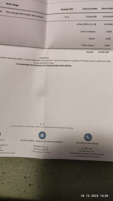 Prodam popolnoma nov avtoradio 2 din, (PNI V8270, GPS, Bluetooth), nikoli vgrajen, kupljen 15.12.2023 na mimovrste. Prodajam, ker ga ne moram vstaviti v alfo 159. Priložim garancijo, original račun pa pošljem na vaš email.