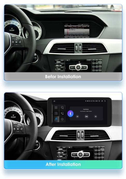 Multimedijski android za Mercedes Benz, 2011-2014 z navigacijo, ki podpira predvajanje glasbe in videa. Podpira Wi-Fi povezavo, prostoročno uporabo Bluetooth, predvajanje iz USB-ja in pretakanje zvoka. Podpira upravljanje originalne igralne palice, originalnega CD predvajalnika, nastavitev avtomobila in gumbov na volanu.