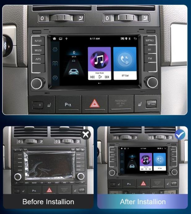 Multimedijski android enota za VW 2004-2009 z navigacijo, ki podpira predvajanje glasbe in videa. Podpira Wi-Fi povezavo, prostoročno uporabo Bluetooth, predvajanje iz USB-ja in streaming zvoka.