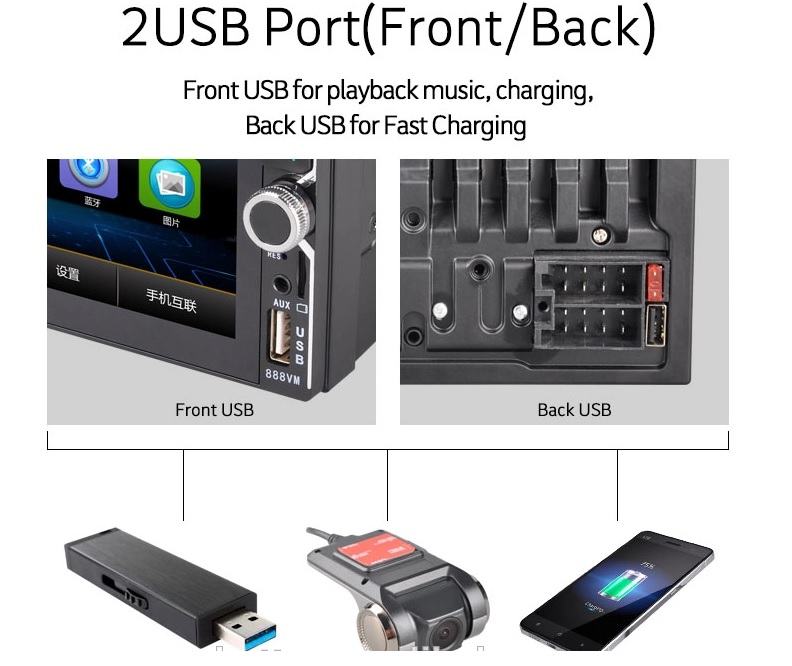 - Radio FM: 87.5-108MHZ
