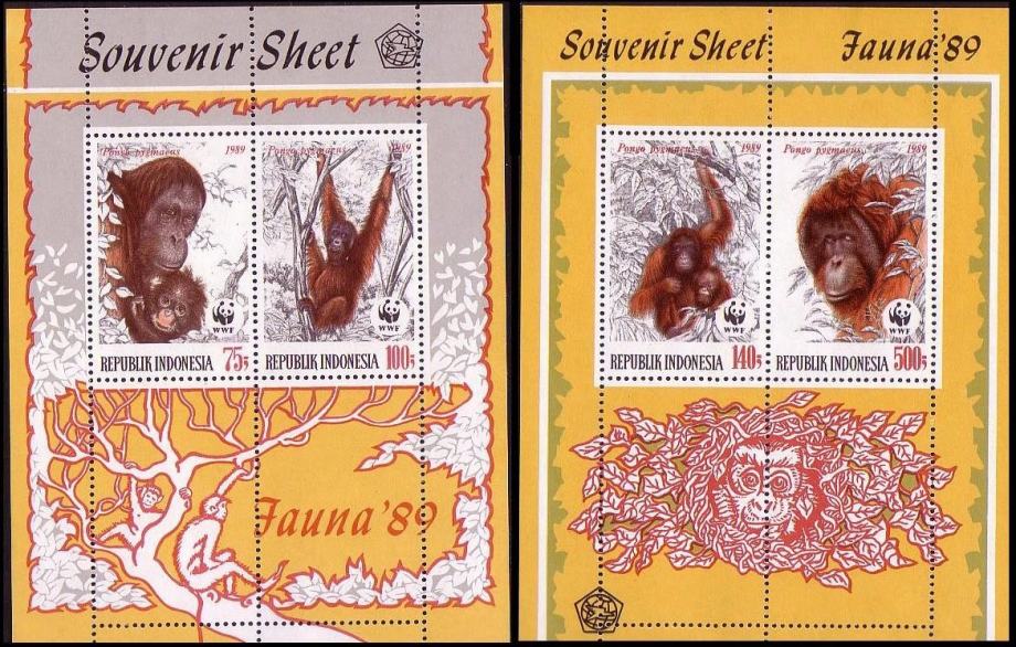 INDONEZIJA 1989 WWF ŽIVALI OPICE PRIMATI ** Mi BL 67/68 * 2x blok (71)