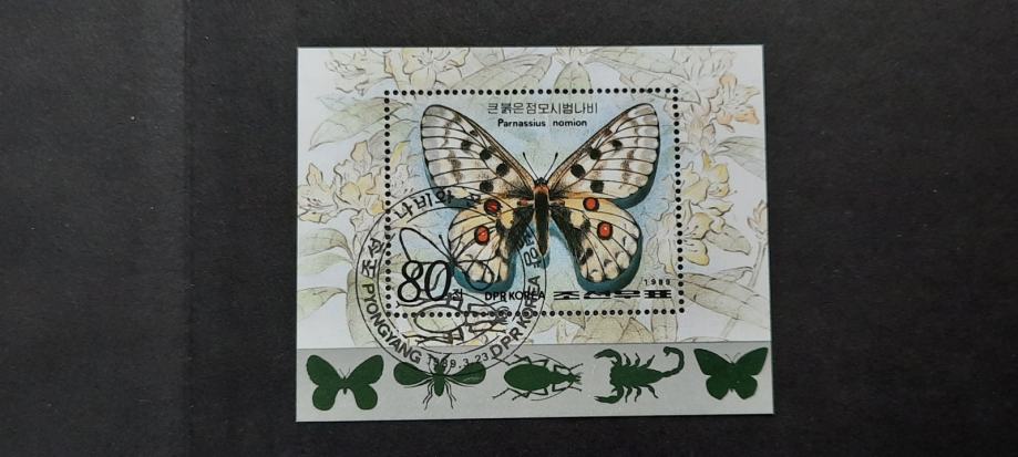 metulji - Severna Koreja 1989 - Mi B 245 - blok, žigosan (Rafl01)