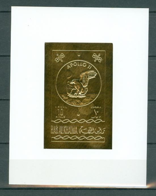 Ras al Khaima 1969 vesolje Apollo 11 zlati neperf. blok MNH** 5% Mi