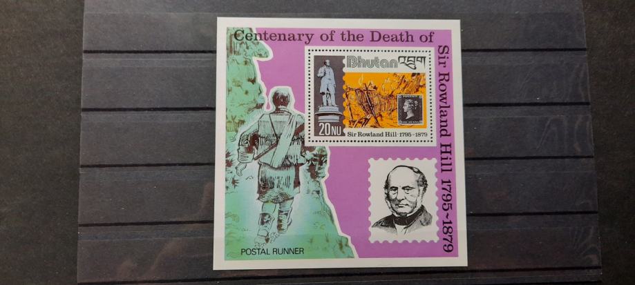 Tema: slavne osebnosti, reformator poštnega sistema, 100 letnica smrti, znamka na znamki.