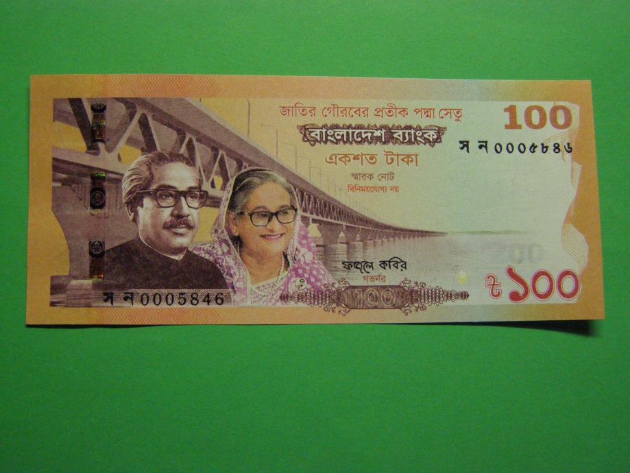 Prodam PRILOŽNOSTNI bankovec iz Bangladeša za 100 Taka (100 BDT), kot ga lahko vidite na fotografijah in je povsem nov - UNC kvalitete.