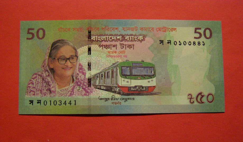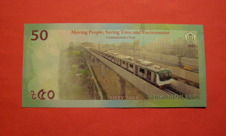 Prodam PRILOŽNOSTNI bankovec iz Bangladeša za 50 Taka (50 BDT), kot ga lahko vidite na fotografijah in je povsem nov - UNC kvalitete. Izdan je ob otvoritvi metro železnice.