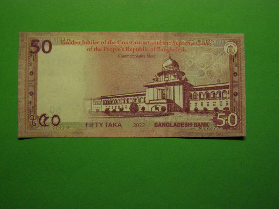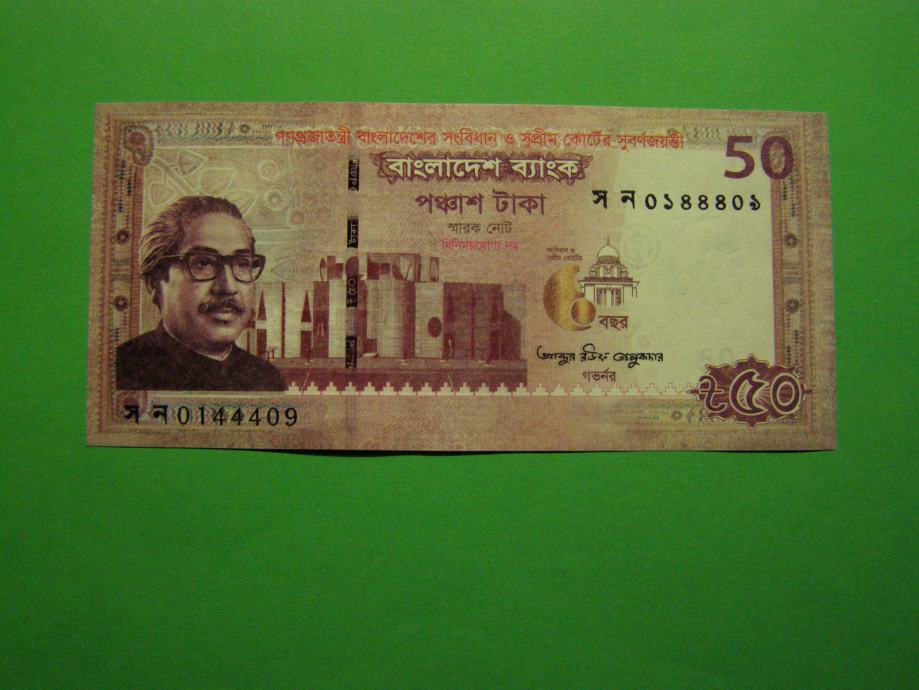 Prodam PRILOŽNOSTNI bankovec iz Bangladeša za 50 Taka (50 BDT), kot ga lahko vidite na fotografijah in je povsem nov - UNC kvalitete. Izdan je ob 50 letnici ustave in parlamenta.