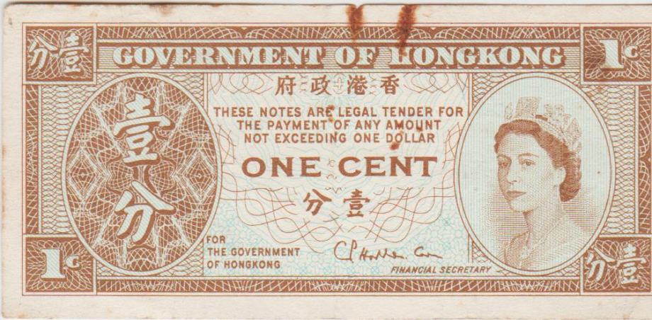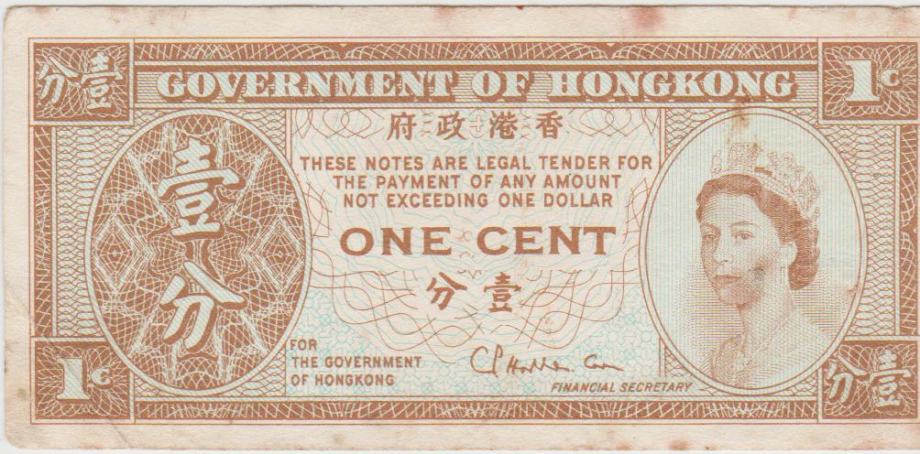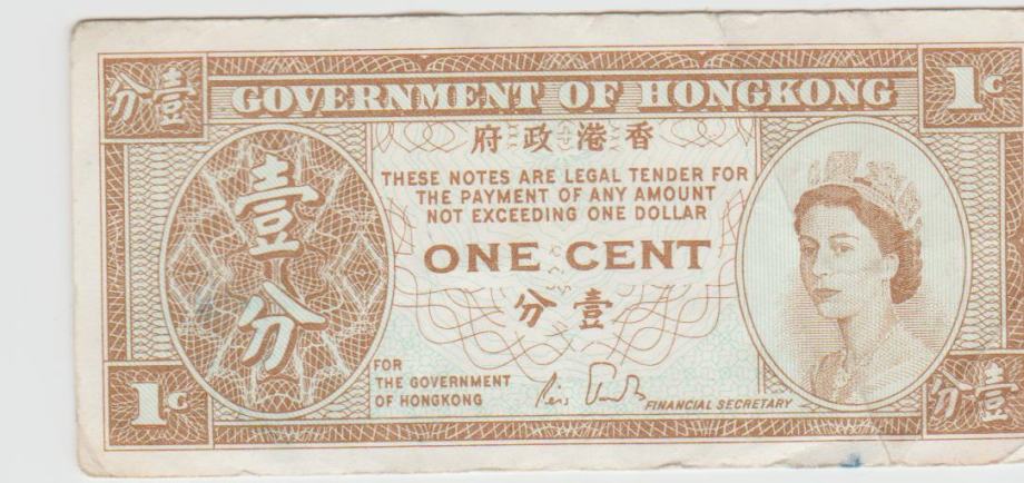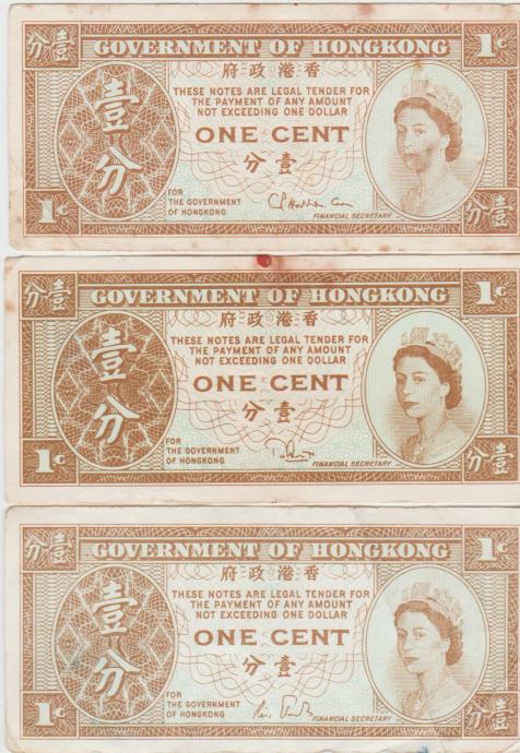 Prodam BANKOVEC ŠE 1 CENT P325a -1971-zgornji IN 1 CENT P325d -1986-spodnji -kralj. ELIZABETA (HONG KONG)VF Kvaliteta. CENA JE ZA 1 BANKOVEC