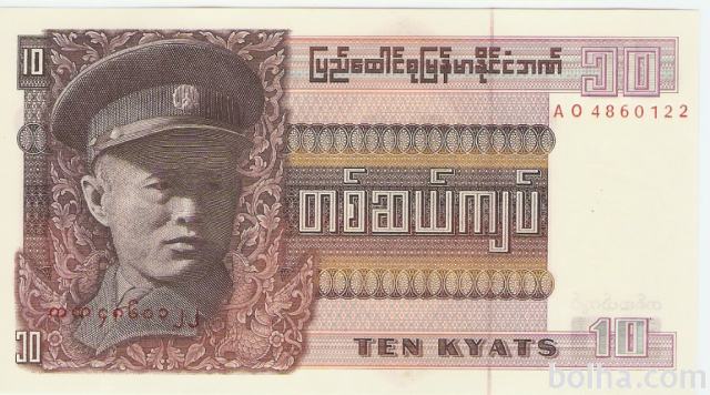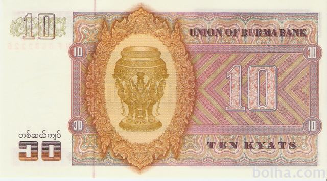 Prodam bankovec 10 KYATS P58-1973 (BURMA MYANMAR), UNC kvalitete.