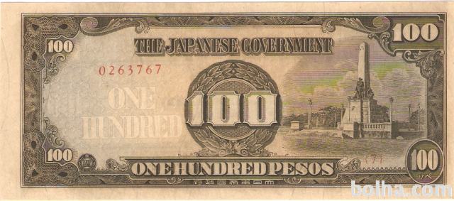 Prodam bankovec 10 PESOS P109a-1942 CENA € 6,90,, IN 100 PESOS P112a-1944 CENA € 9,90 (JAPONSKA OKUPACIJA FILIPINOV) aUNC/UNC Kvaliteta.