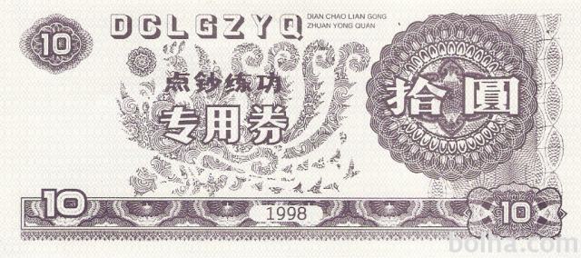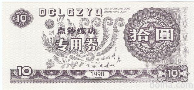 Prodam bankovec 10 YUAN IN 10 YUAN (KITAJSKA RAZVOJNA BANKA - CHINA CONSTRUCTION BANK) 1998, UNC kvalitete..CENA JE ZA 1 BANKOVEC