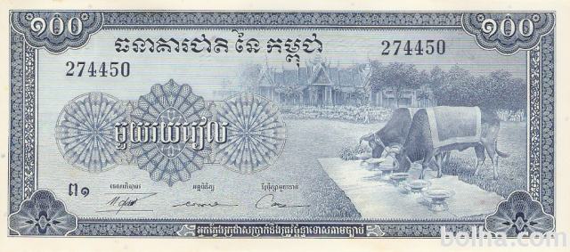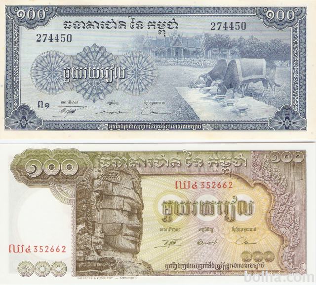 Prodam bankovec 100 RIELS P13b-1972(1956)"krave" IN P8c.2-1972(1956)"ruševine" (KAMBODŽA CAMBODIA) 1972 (1956) UNC kvalitete. CENA JE ZA 1 BANKOVEC.1,10€), ali priporočeno(2,80€). Kupec plača stroške dostave.