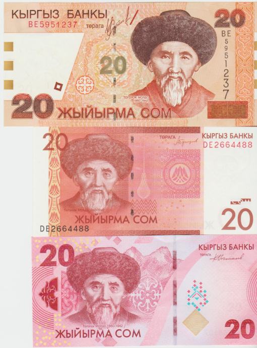 Prodam BANKOVEC 20 SOM P19a-2002 CENA € 4,50 ,, 20 SOM P24b-2016 CENA € 2,90 IN 20 SOM P34a-2023 CENA € 2,50(KIRGIZIJA KIRGISTAN) UNC kvalitete.