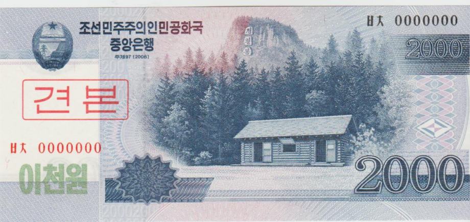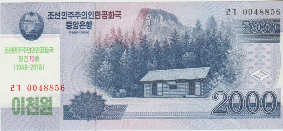 Prodam BANKOVEC ŠE 2000 WON P65s"SPECIMEN"-2008,, 2000 WON PCS24a - "70. obletnica Demokratične ljudske republike Koreje..).(SEVERNA KOREJA ) UNC kvalitete.CENA JE ZA 1 BANKOVEC.