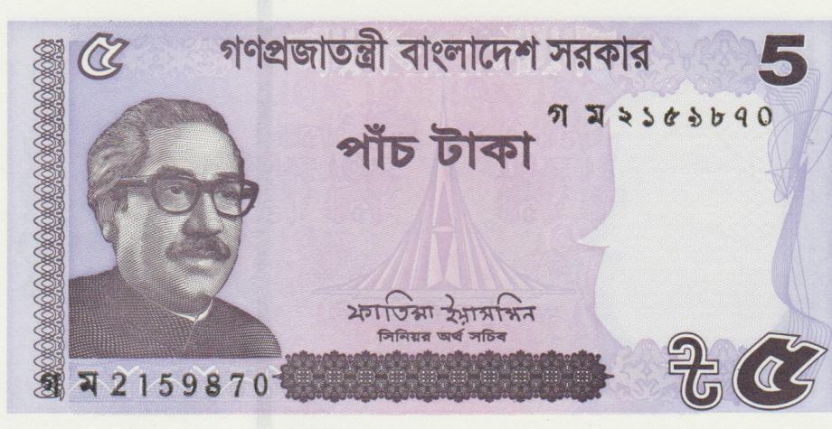Prodam bankovec 5 TAKA P53c-2012 CENA € 1,50,, ,5 TAKA P53Aa-2014 CENA € 1,60,, 5TAKA P53Ab-2015 CENA € 1,60 ,, 5 TAKA P64Ab-2017 CENA € 1,70 IN 5 TAKA P64Ae-2022 CENA € 1,70 (BANGLADEŠ) UNC kvalitete.