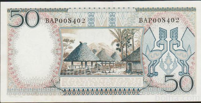 Prodam ZELO REDEK BANKOVEC 50 RUPIAH P58 (INDONEZIJA) 1958.UNC kvaliteta,