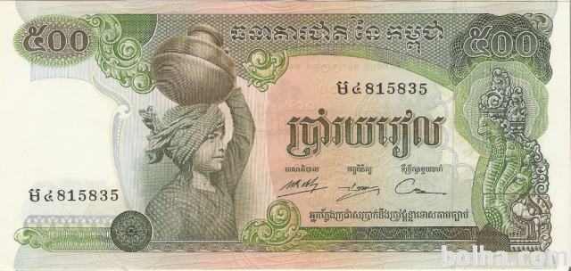Prodam bankovec 500 RIELS P16a.2 (KAMBODŽA CAMBODIA) 1973. UNC kvalitete.